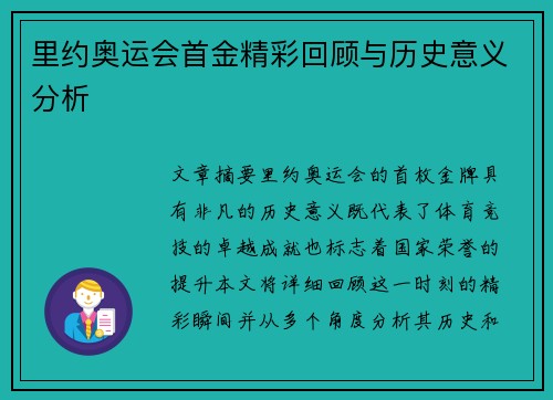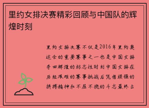 里约女排决赛精彩回顾与中国队的辉煌时刻